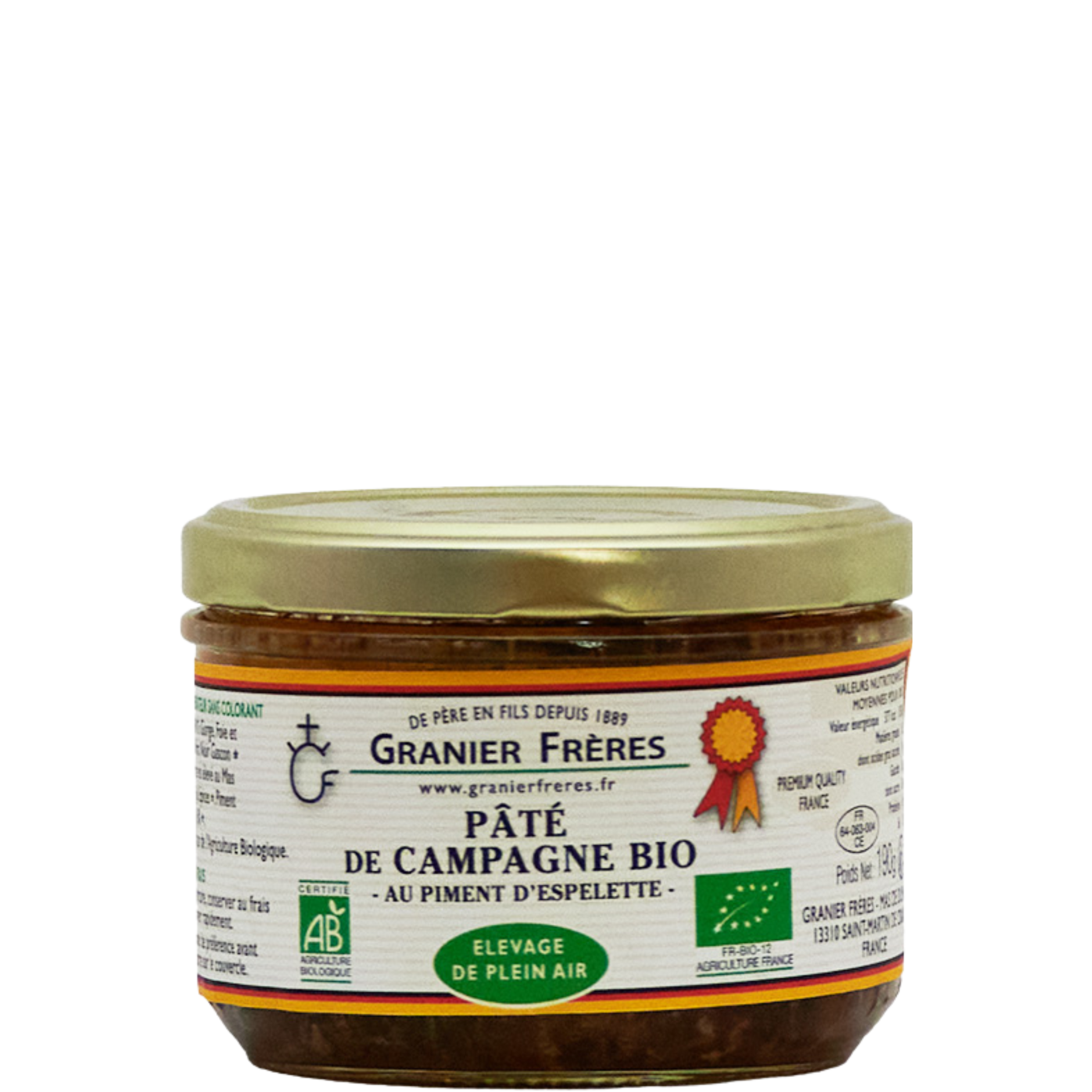 Ce délicieux pâté de campagne au piment d’Espelette Bio est certifié en Agriculture Biologique et fabriqué en Provence ! Cette épice lui apporte puissance et goût sans ajouter cependant de piquant.