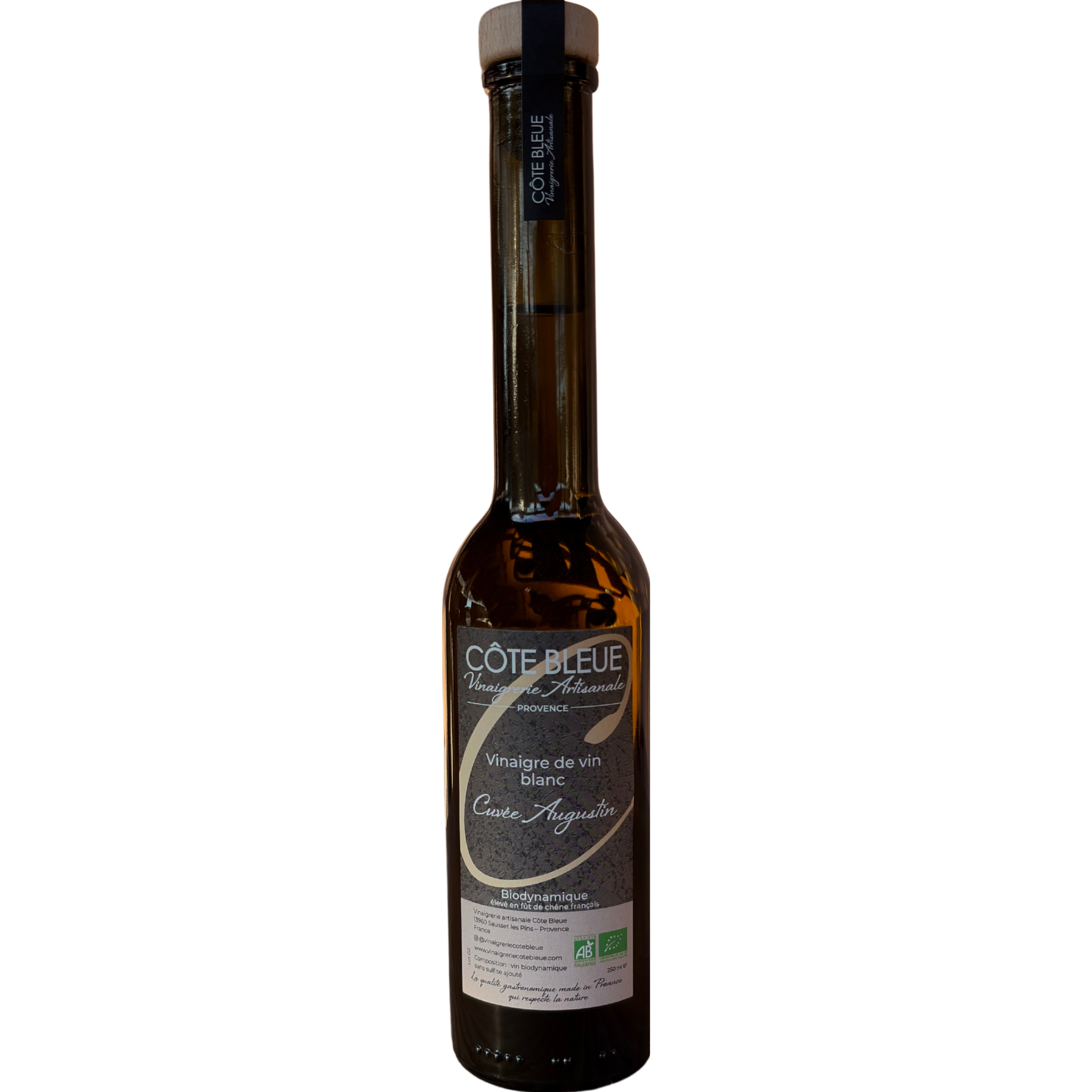 La cuvée Augustin Blanc est un vinaigre Vinaigre de vin Bio élaboré dans le vignoble Gasqui. En effet ce vignoble est situé sur les contreforts des Maures dans le Var. Le vinaigre Augustin blanc est vieilli pendant un an en fût de chène.